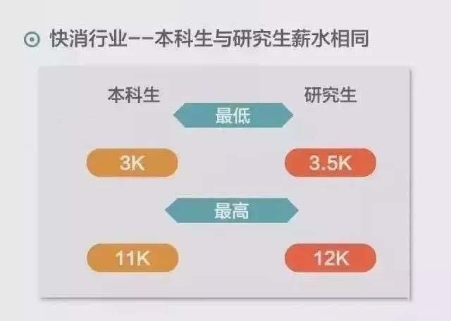 分析:快消行業(yè)本科生和碩士薪資基本相同,讀研并不能帶來起薪上的顯著提高。因此,快消行業(yè)的同學們?nèi)绻麊渭冎皇菫榱颂岣吖ば剑€是盡量放棄考研的想法吧,踏踏實實找工作才是最重要的。