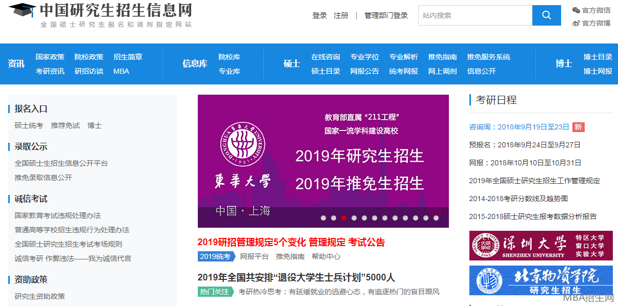 預報名是需要在網上進行的,而報名的網站只有一個,就是中國研究生招生信息網(簡稱“研招網”),這個是國家統一規定的報名網站,只此一家,別無分號!