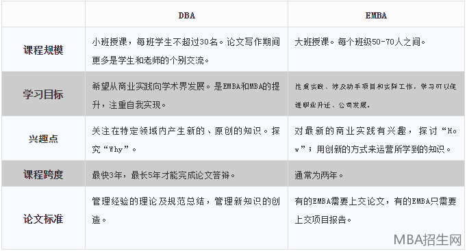 DBA對比EMBA,高級工商管理碩士,旨在培養(yǎng)具有高度政治素養(yǎng)、責(zé)任心和職業(yè)道德的中、高層管理者,有別于MBA,以及其他各類針對企業(yè)管理者的在職研修班等EDP培訓(xùn)類似。全國工商管理碩士教育指導(dǎo)委員會官網(wǎng)于2016年4月發(fā)文明確規(guī)定,自2017年起,高級管理人員納入統(tǒng)一的碩士研究生入學(xué),依教育部劃定統(tǒng)一學(xué)位分?jǐn)?shù)線招生。