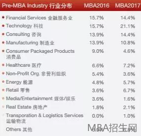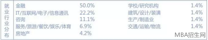 綜上,可以看出無論哪個(gè)綜合類商學(xué)院,金融行業(yè)和IT互聯(lián)網(wǎng)行業(yè)穩(wěn)居前三。此外,據(jù)統(tǒng)計(jì),咨詢行業(yè)、醫(yī)藥行業(yè)成為新寵,制造業(yè)就業(yè)較之前比例增加。