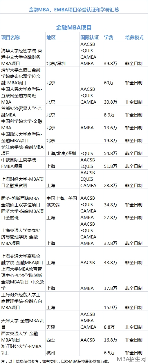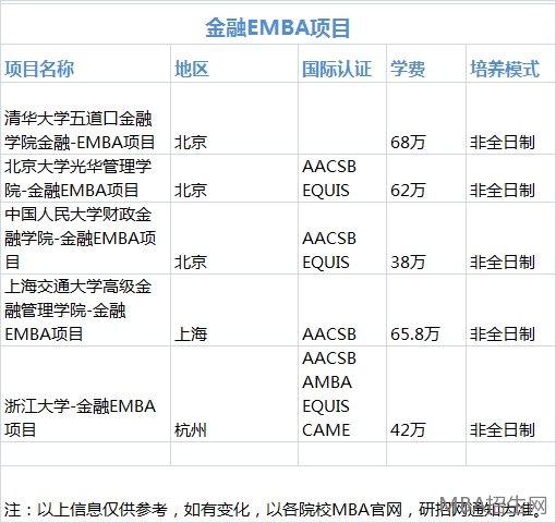 全國金融EMBA、MBA項(xiàng)目匯總: