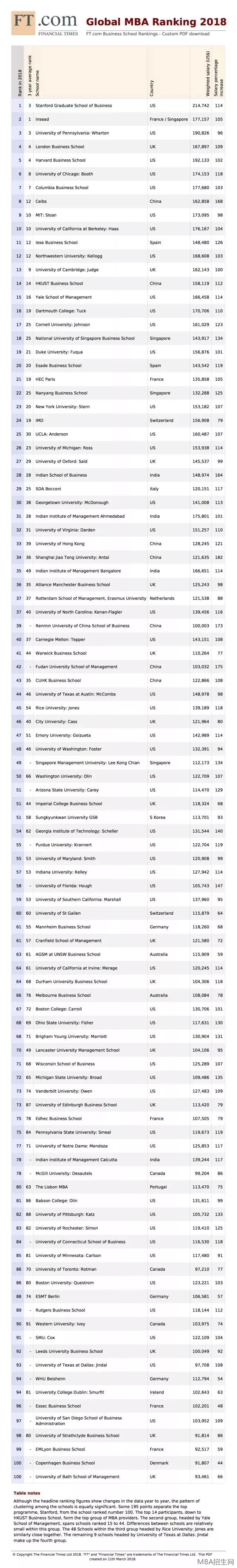 不管是Fulltime的MBA項(xiàng)目,又或者是短期課程,同學(xué)們參與到MBA項(xiàng)目中的選擇越來越多,但在這么多國家和地區(qū)當(dāng)中選擇自己合適的院校和項(xiàng)目,并非簡(jiǎn)單的事情。今天教育君就為大家?guī)怼督鹑跁r(shí)報(bào)》的MBA項(xiàng)目前100的榜單,為大家挑選適合自己的MBA項(xiàng)目提供一點(diǎn)小小的建議。